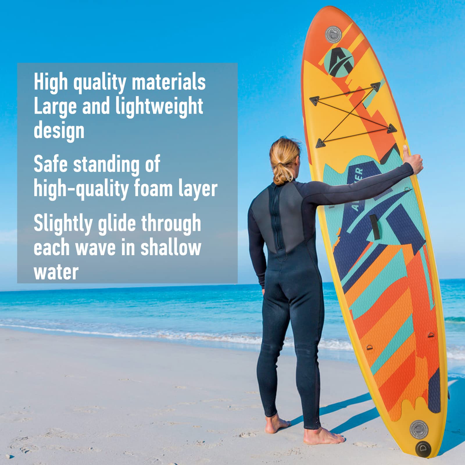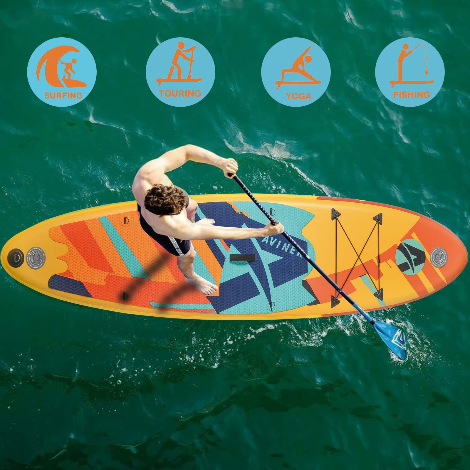 - [𝐄𝐬𝐭𝐚𝐛𝐥𝐞 & 𝐃𝐮𝐫𝐚𝐝𝐞𝐫𝐨]: la tabla de sup de Aviner cuenta con unas dimensiones de 𝟑𝟎𝟓×𝟕𝟏×𝟏𝟓 𝐜𝐦, esta tabla puede soportar hasta 𝟏𝟓𝟎𝐊𝐆 de peso y es perfecta para los amantes del deporte acuático que buscan una opción fácil de transportar y almacenar sin sacrificar la calidad y la estabilidad en el agua.
