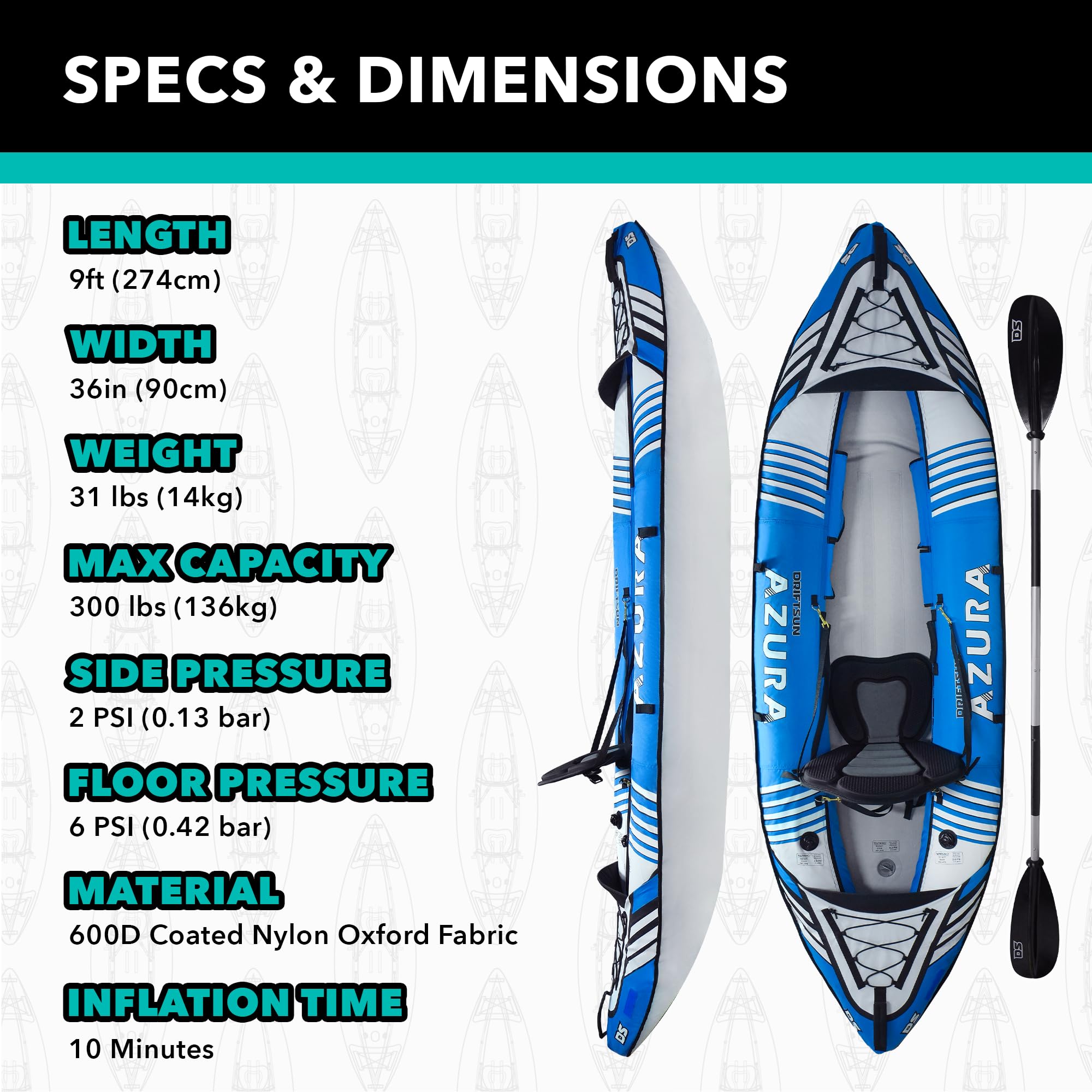 - TOURING AND RECREATIONAL KAYAK – The NEW Azura series is designed with durability and longevity in mind with our drop stitch 3-chamber design. An ideal folding kayak for distance paddling, best used on flat water and mild ocean chop.