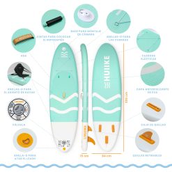 - Todos los Accesorios que Necesitas – La colección “Enjoyer – Full Pack” incluye: tabla de paddle surf hinchable verde, mochila, leash, inflador, remo de aluminio doble uso, 3 quillas, asiento kayak, reposapiés, correa de transporte, kit de reparación, bolsa estanca 5L, funda y soporte para móvil