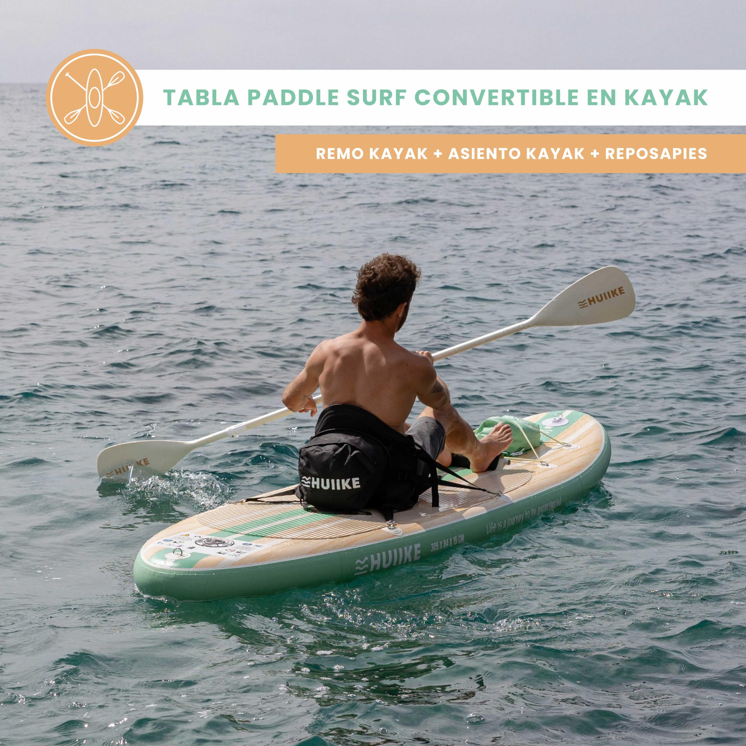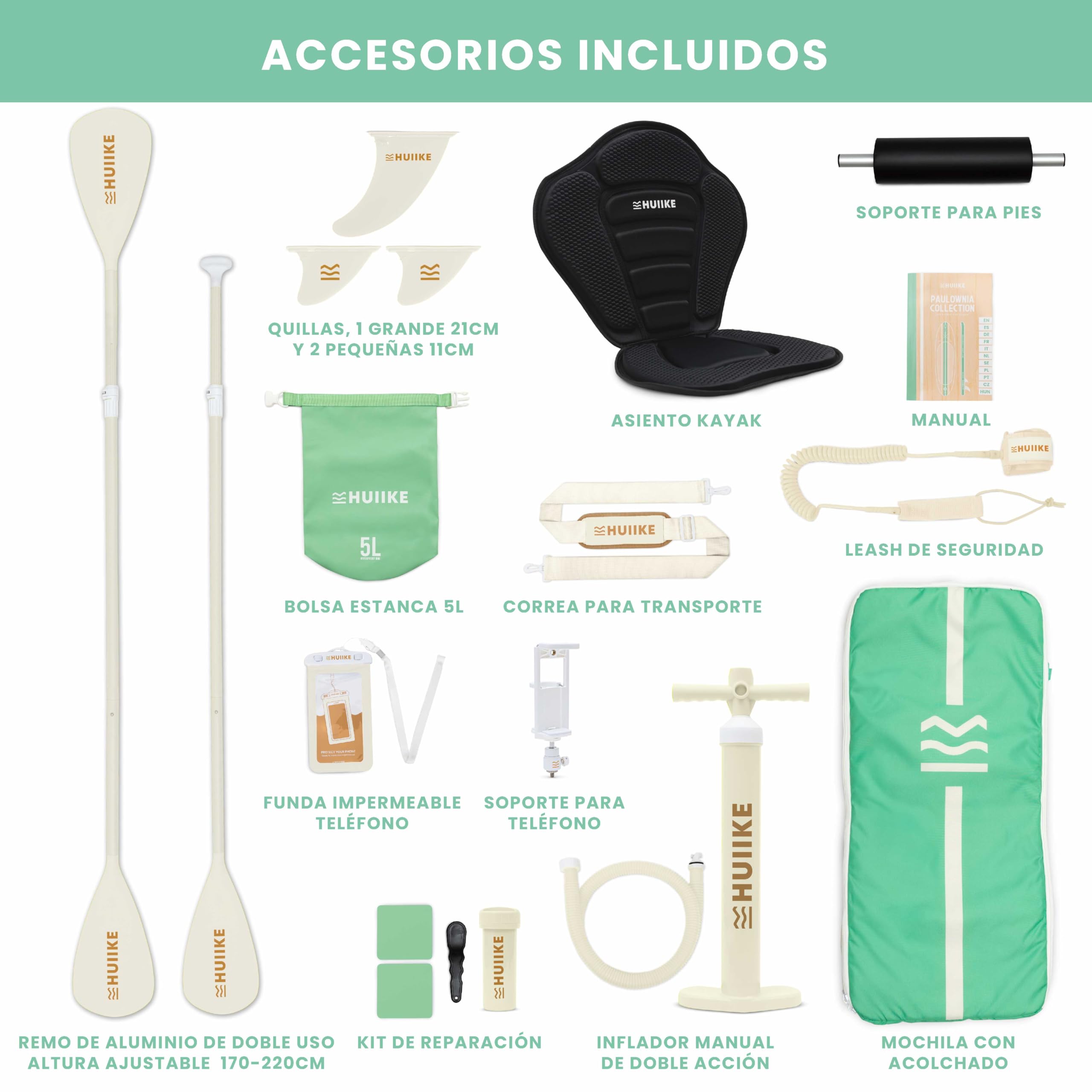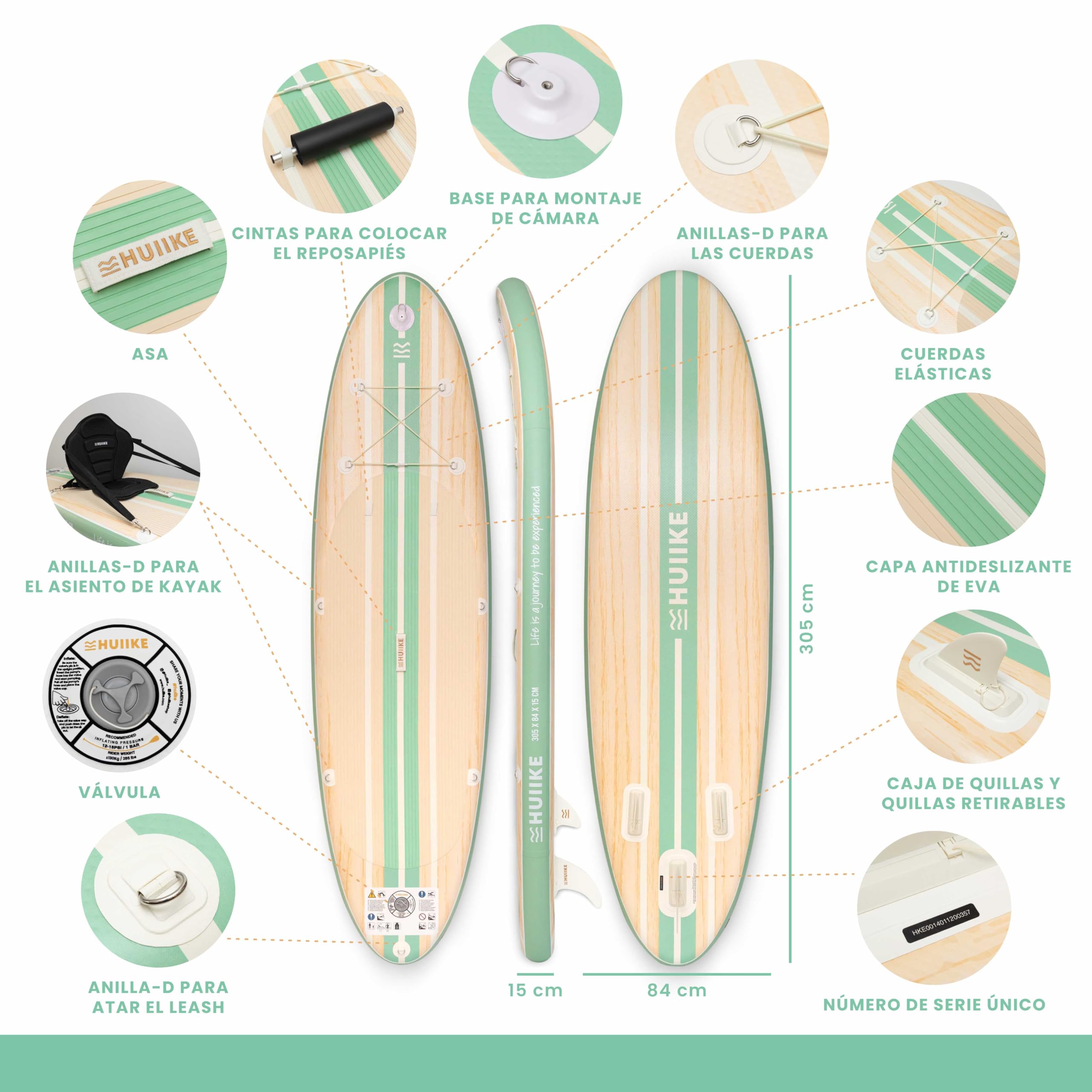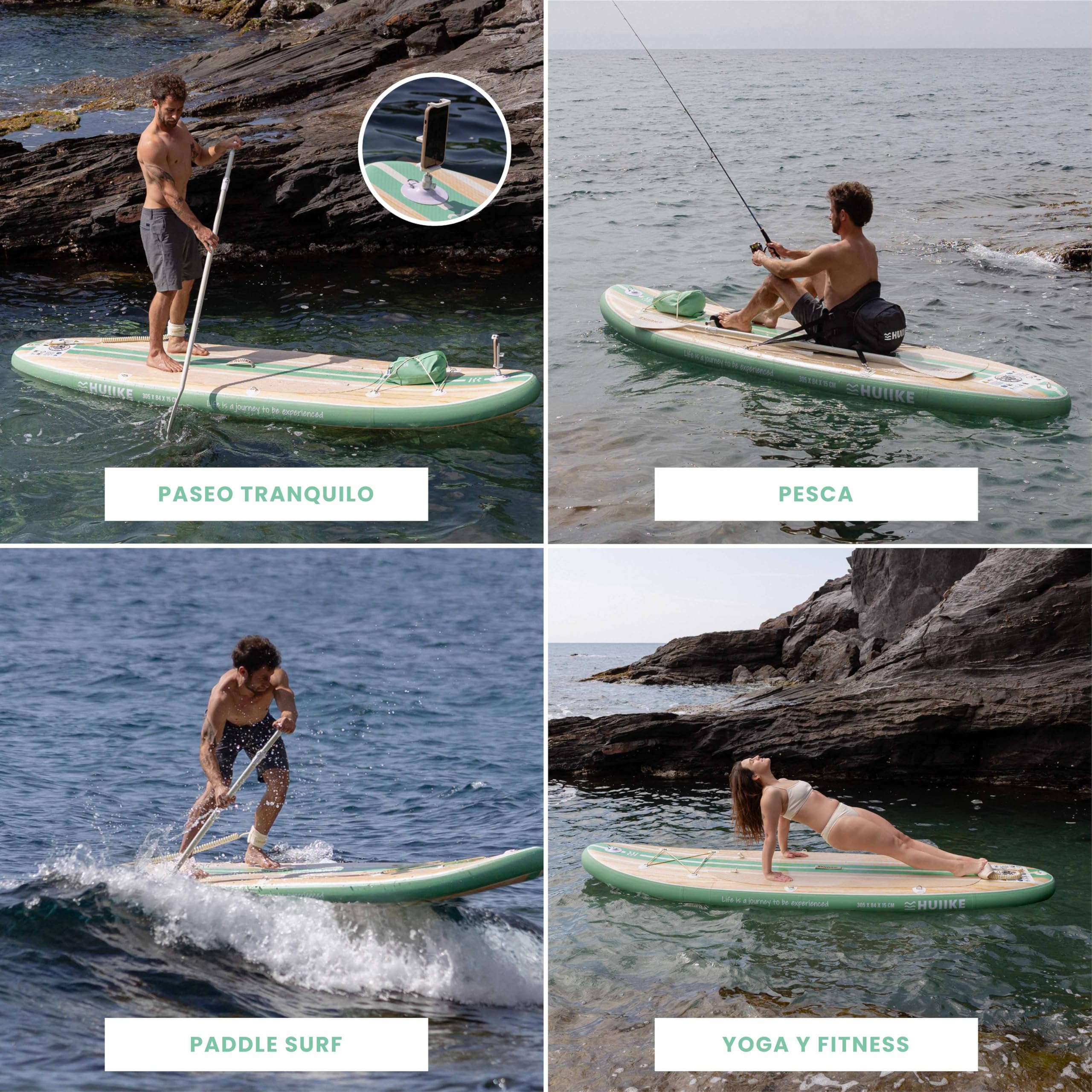 HUIIKE Tabla Paddle Surf Hinchable con Accesorios Incluidos, Remo, Quillas, Inflador. Stand Up Paddle Board Gran Estabilidad y Resistencia. 305 x 84 x 15 cm, Soporta hasta 130 kg