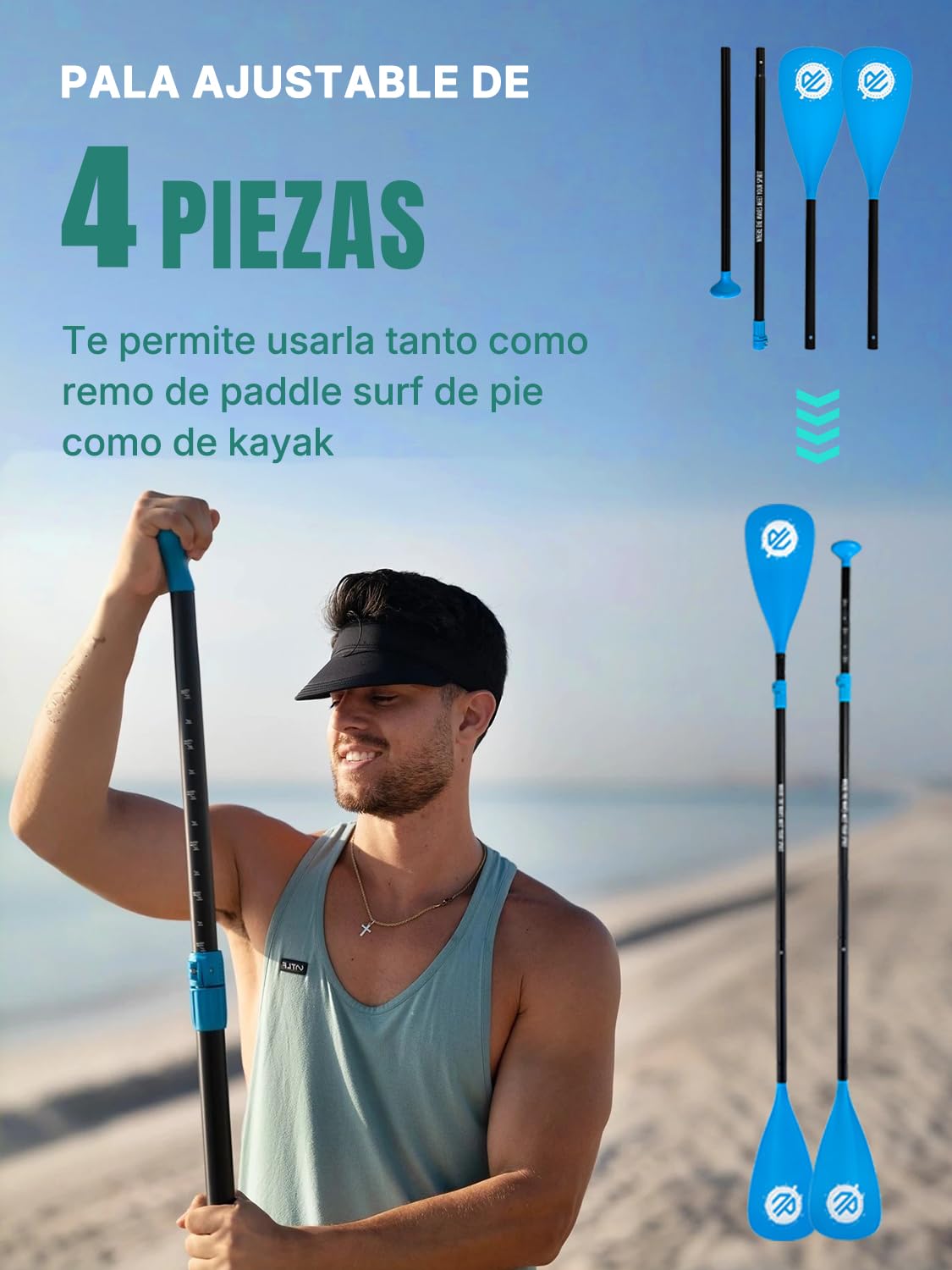 - 【Versatilidad para Diversos Escenarios】- Las remo paddle surf están equipadas con dos montajes multifuncionales para acoplar accesorios como soportes para cámaras, portavasos y porta cañas de pescar. La proa y la popa de la tabla cuentan con cuerdas elásticas para personalizar según las preferencias. Este tabla surf es ideal para diversas condiciones de agua como océano, lago y río, perfecto para yoga, surf, exploración, viajes y pesca.