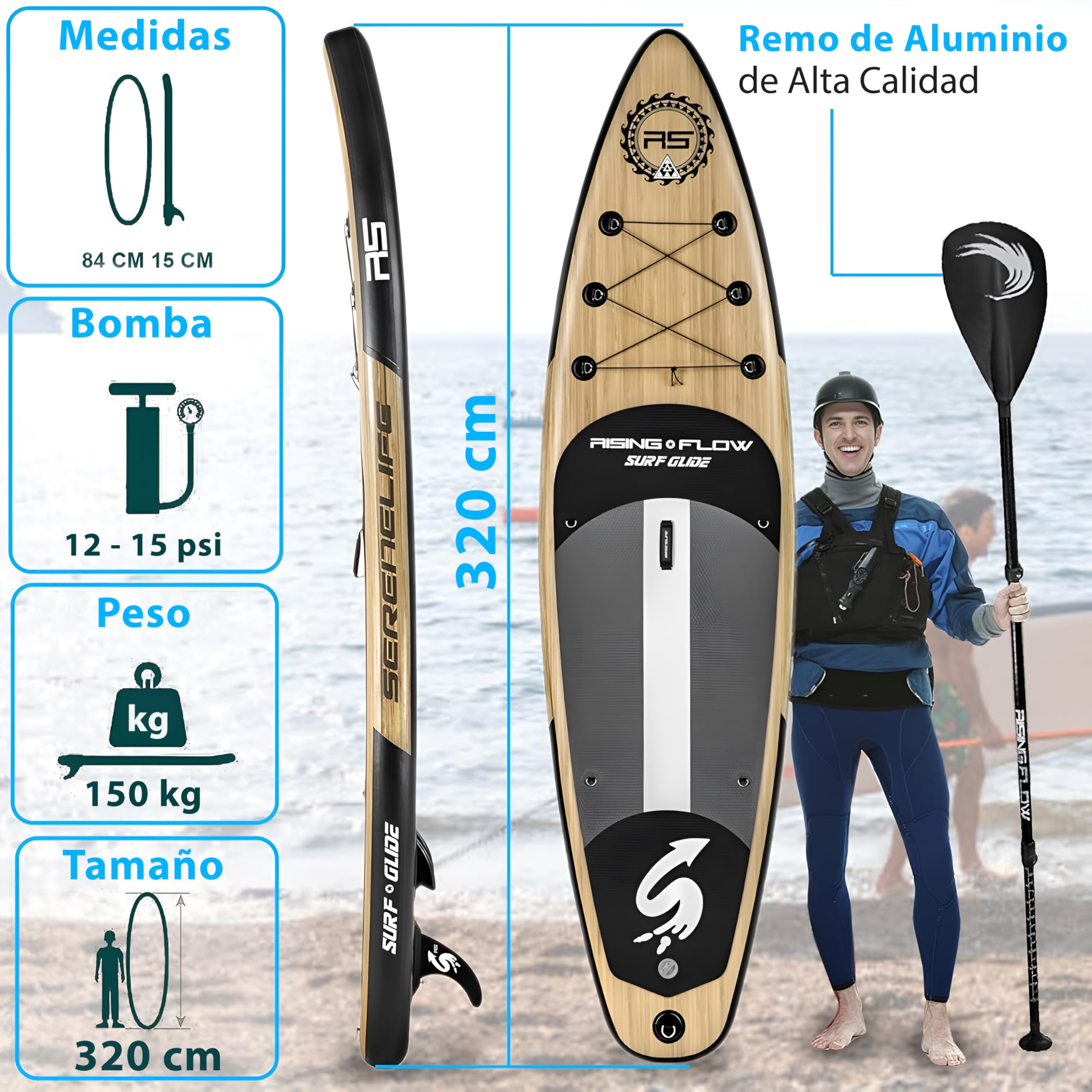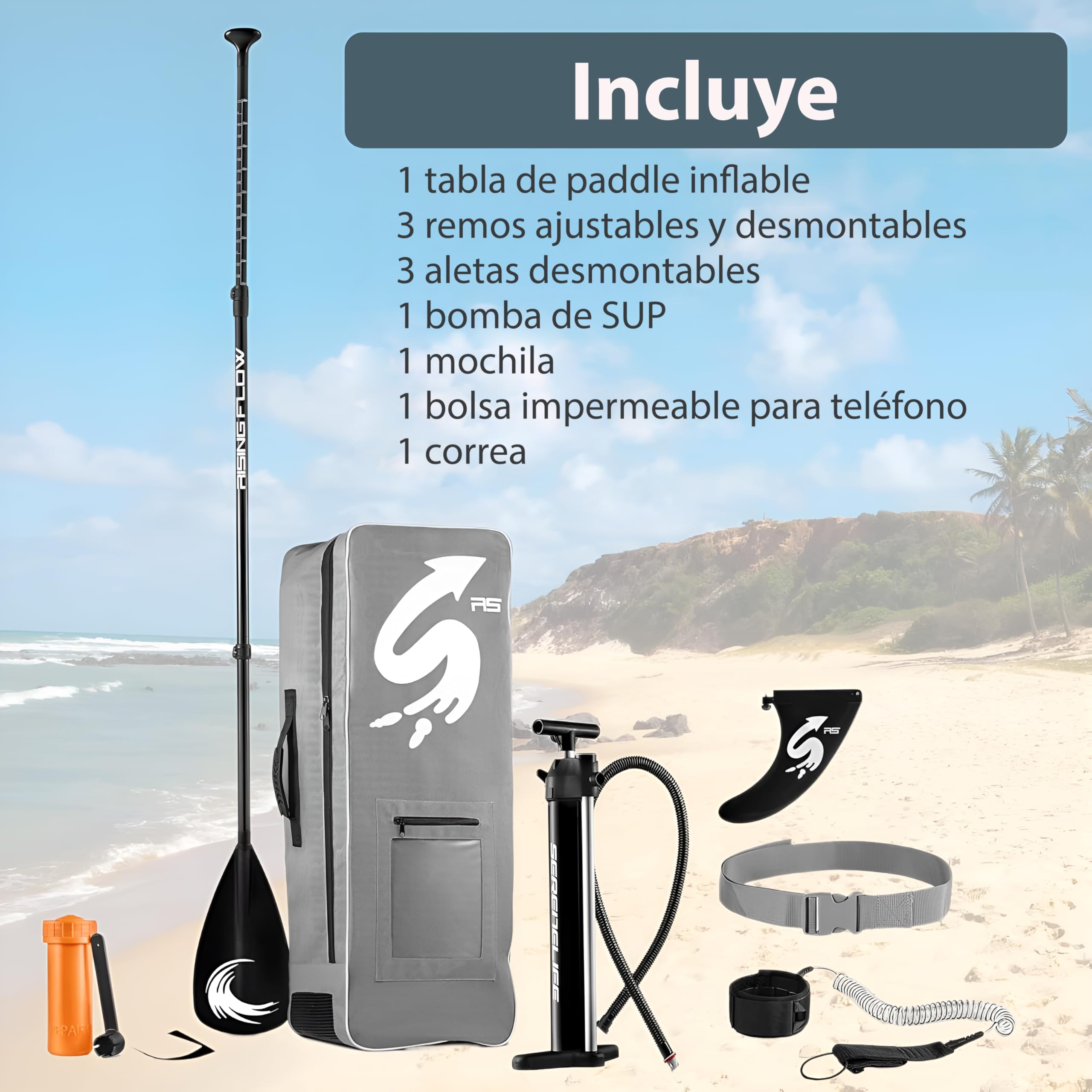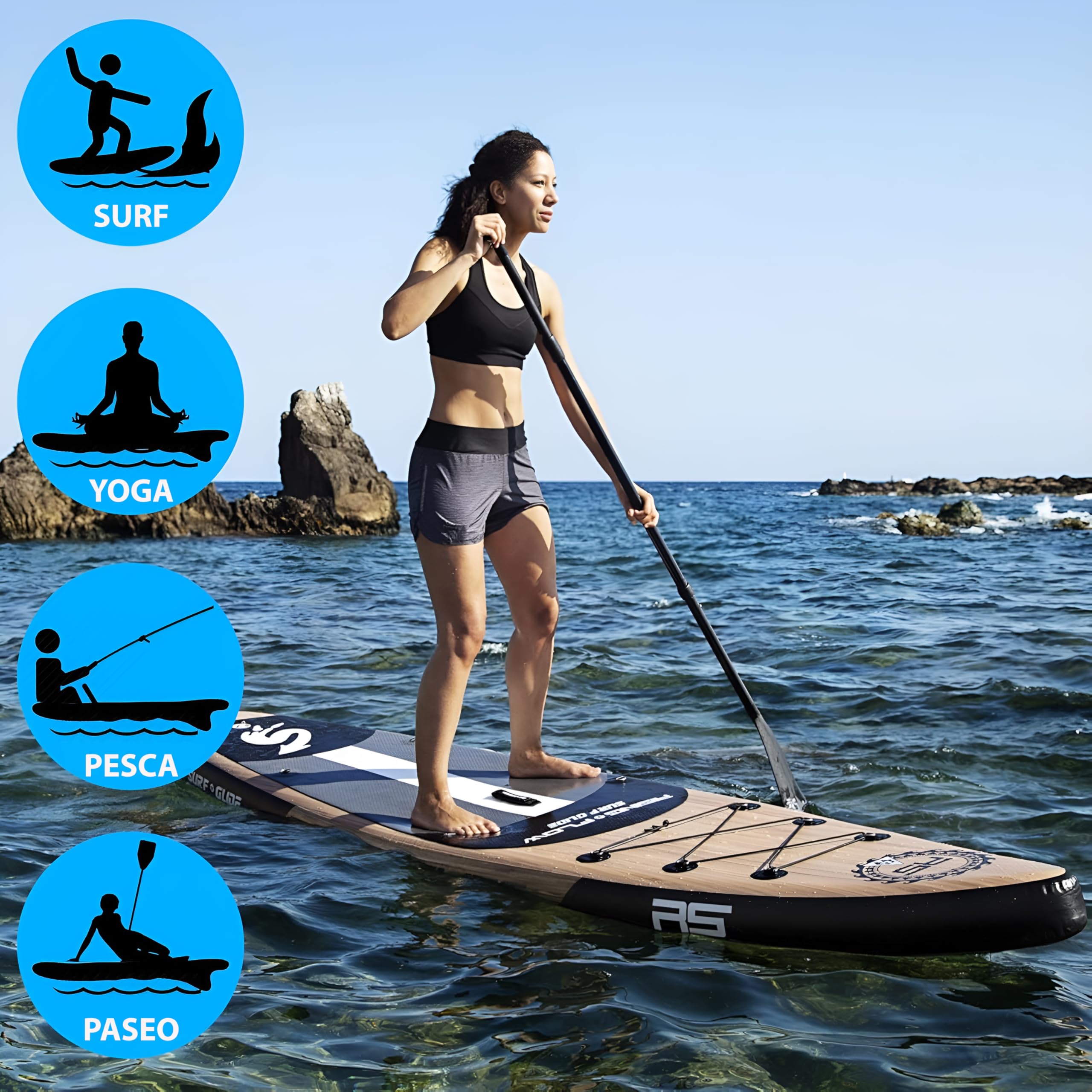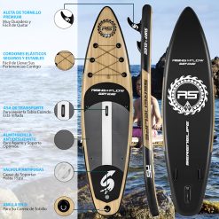 - ACCESORIOS COMPLETOS: Listo para el agua y viene con todo lo necesario, incluida una base de plataforma inflable de una sola pieza para una sola persona, paletas de remo, bomba de aire, correa/correas de seguridad con puño enrollado en el tobillo, kit de reparación de parches, bolsa inflable para tabla de remo