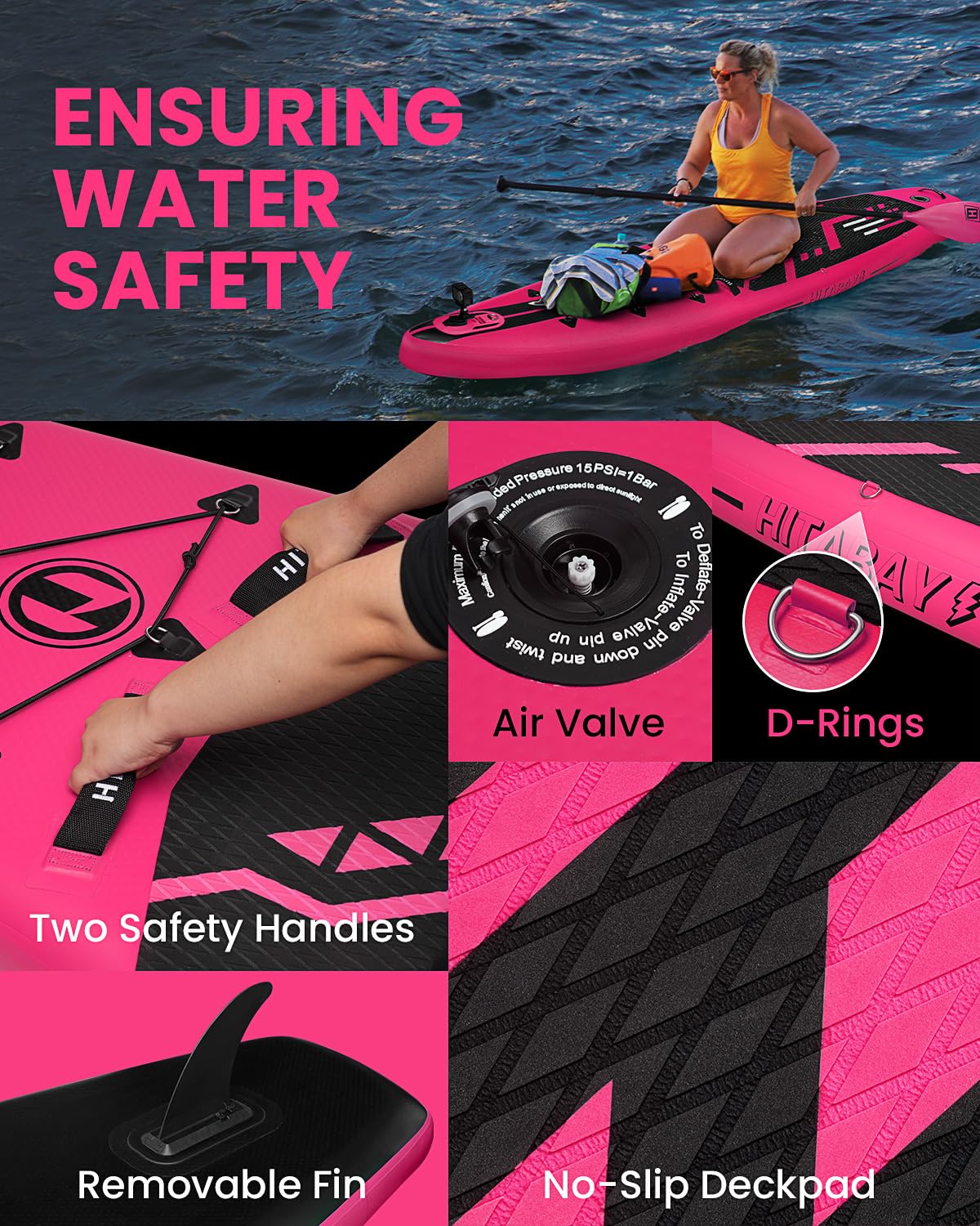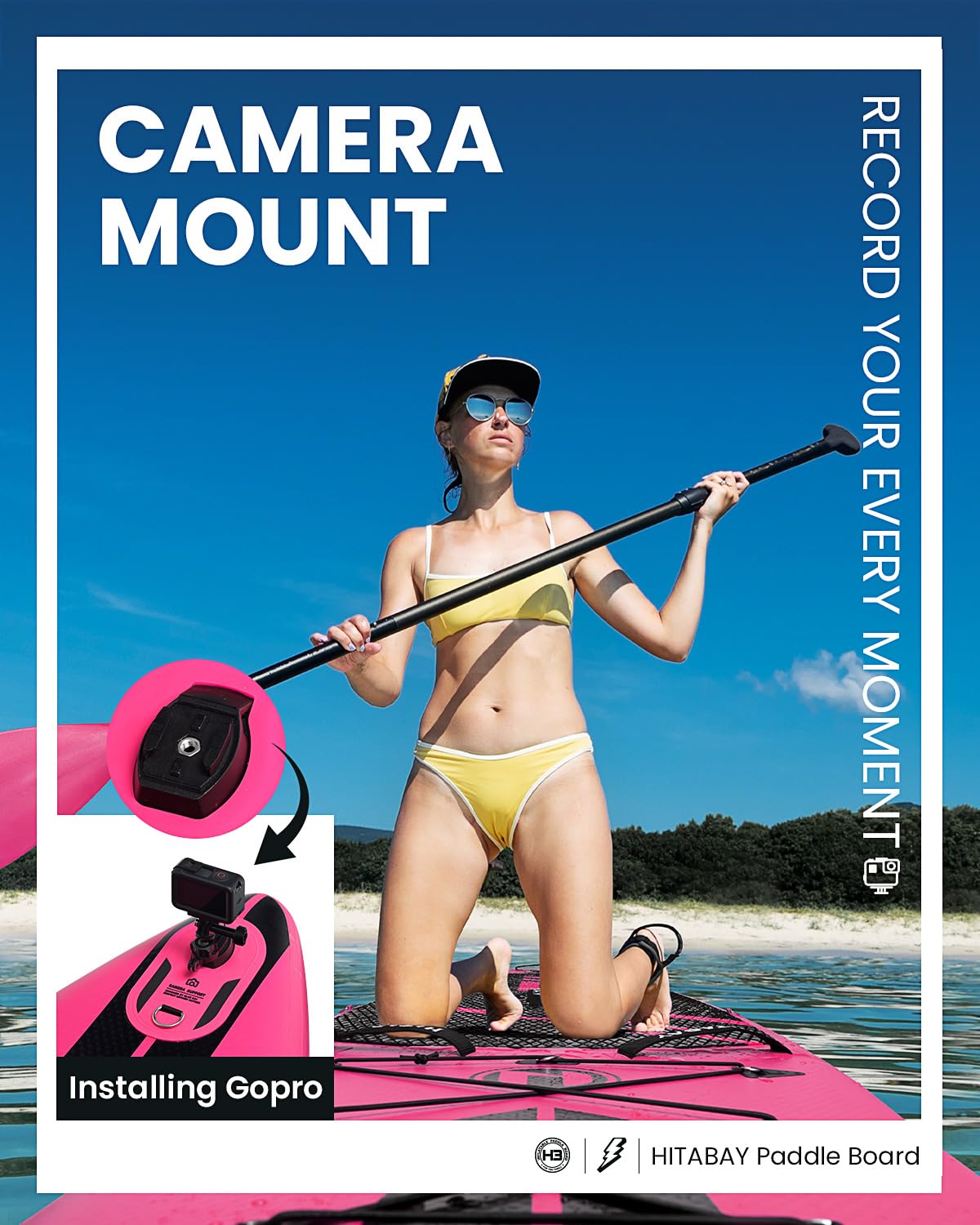 - 💗MANGO DE SEGURIDAD Y MONTAJE PARA CÁMARA | Hay dos asas de seguridad en la parte delantera de la paddle surf HITABAY. Cuando las personas se sientan frente al tabla paddle surf, pueden sujetar las asas para garantizar la seguridad. Puedes instalar la cámara de acción en el soporte de la cámara y grabar tus maravillosos momentos en cualquier momento.