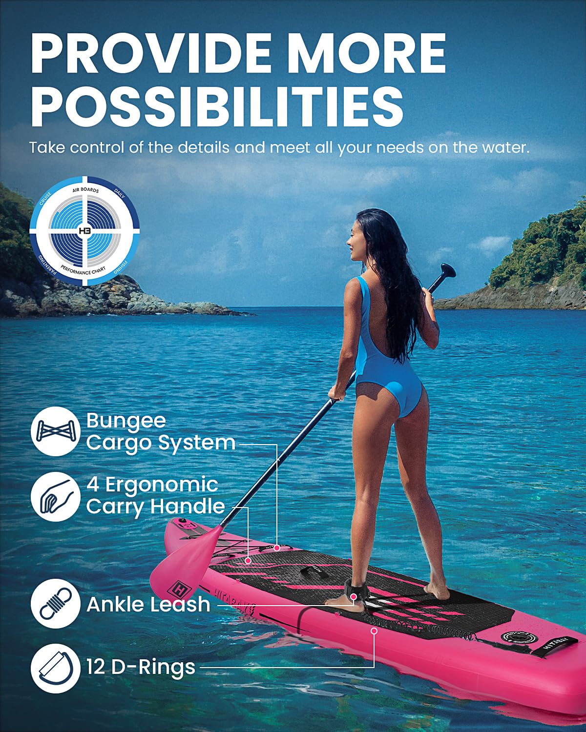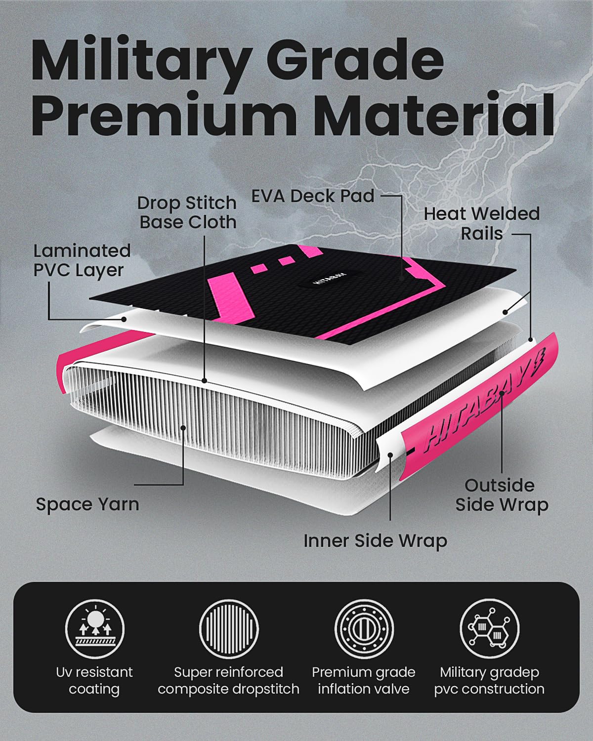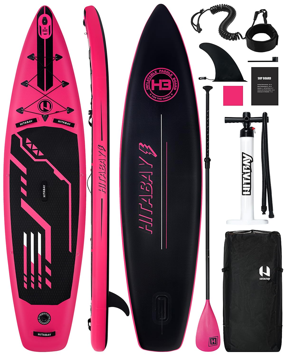 - 💗TABLA DE SURF DE ALTA CALIDAD | La duradera tabla paddle surf hinchable de Hitabay hecha de PVC de grado militar y fibras compuestas de punto de caída para una plataforma sólida como una roca. La plataforma antideslizante de EVA está tratada con ranuras de diamante, lo que mejora el agarre en condiciones húmedas para ayudar a controlar mejor los giros y el seguimiento.