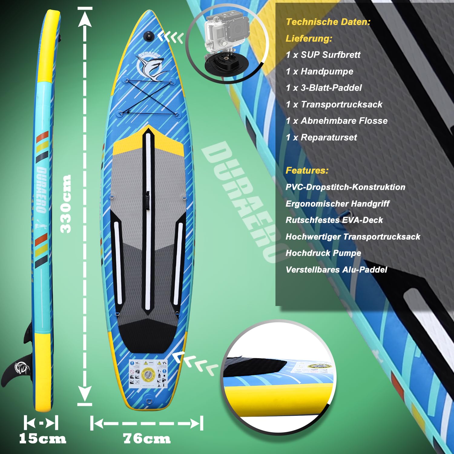 Tabla de Stand up Paddle para Adultos, Tabla de Paddle Surf de 330cm para Todos los Niveles, Sup con Capacidad de Carga de 150kg, Soporte para cámara.