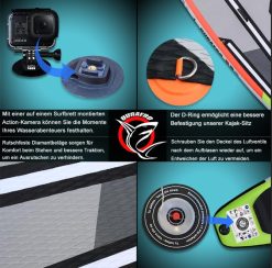 - ✅ Base para cámara integrada. La base en la parte delantera de la tabla SUP hinchable te permite grabar tus aventuras en el agua con una cámara de acción. La sujeción es compatible con varios modelos de cámaras, garantizando grabaciones de alta calidad.
