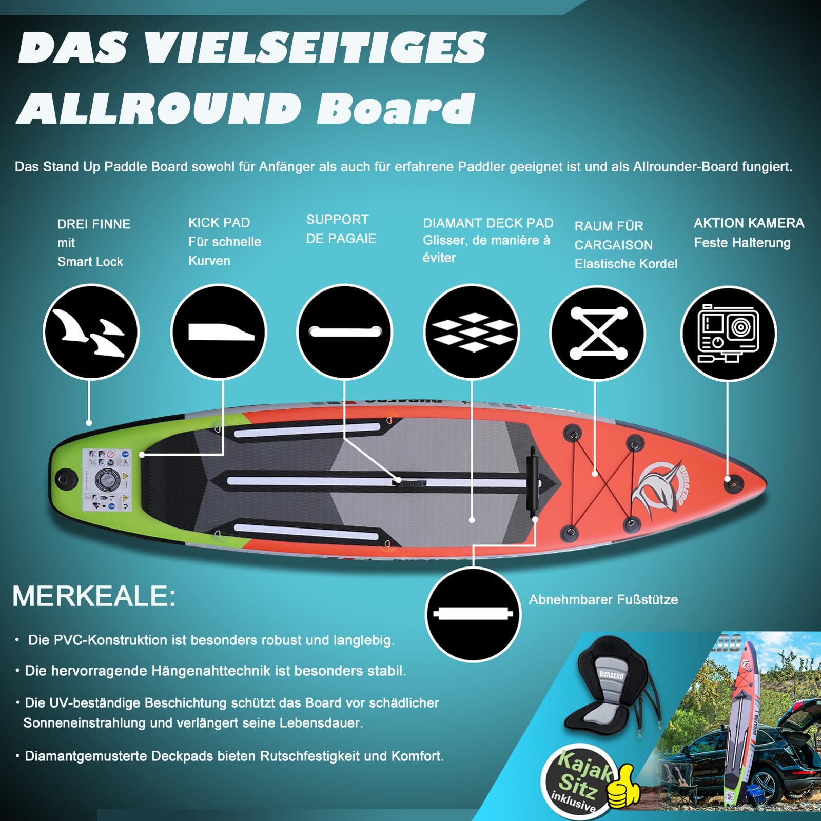 - ✅ Kayak y Stand Up Paddleboarding en uno. Creemos que no deberías tener que elegir entre los dos, por lo que hemos desarrollado un iSUP que te permite hacer ambos. Si te cansas o simplemente quieres un cambio, puedes convertir fácilmente la tabla SUP en un kayak.