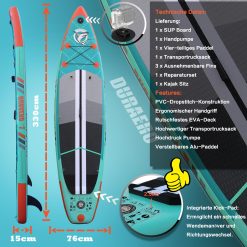 - WIDE SUP DESIGN – El tablero de remo DOEWORS Stand Up tiene 330 cm de largo y un ancho de plataforma de 76 cm para mejorar la estabilidad y el equilibrio mientras está de pie