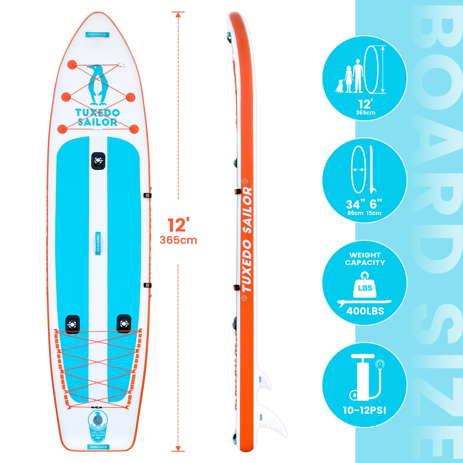 Tuxedo Sailor Tabla Paddle Surf Hinchable para Adultos y Niños 240/320/365 cm Padel Surf Hinchable con Accesorios, Stand Up Paddle Board Sup Ultraligera Tabla de Sup Inflatable